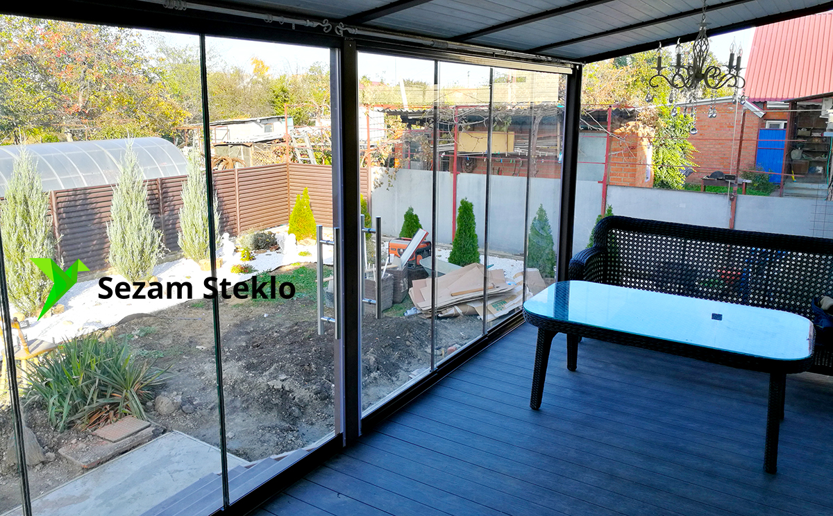 Раздвижное безрамное остекление террасы в Тимашевске