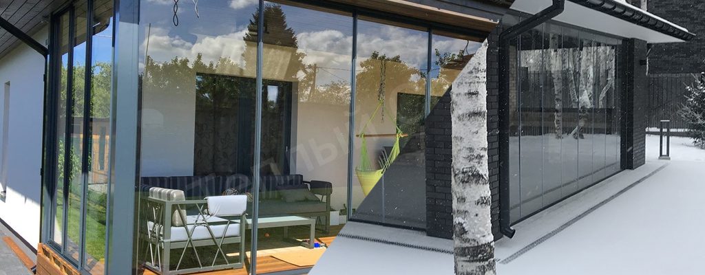 Впервые они были созданы 40 лет назад в Финляндии. Раздвижные конструкции из стекла позволяют использовать беседки, террасы, зоны барбекю все четыре сезона года. Летом створки можно открыть полностью, чтобы воздух циркулировал по всей площади. В межсезонье сквозь стекла помещение будет прогреваться, даря комфорт пребывания в нем весной и осенью. Зимой безрамная конструкция сохранит тепло, защитит помещение от холодного ветра и осадков.